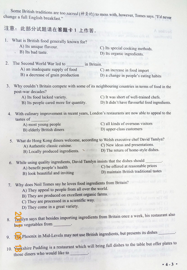 2011年6月大学英语四级考试真题试卷(图片版)