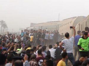 The accident happened after four carriages of the train, coming from Cairo to the Delta city of Mansoura, derailed, the Egyptian Ministry of Transportation said.