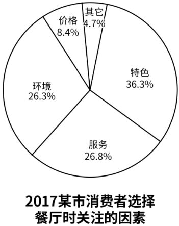 What is shown in the pie graph above indicates the factors that exert influences on customers’ choice of restaurants. From the chart, we can find that people attach greatest importance to the unique characteristics of a restaurant, occupying 36.3% of all the factors. Environment and services take up the next two largest shares, accounting for 26.3% and 26.8% respectively. Price