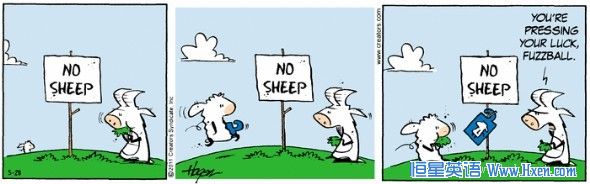 Donkey:You're pressing your luck, fuzzball.【生词注释】press your luck 在很有利的形势下作多余的冒险