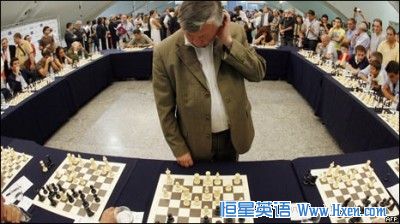 Background: 有史以来最大象棋对抗赛这周即将重新上演。加里·基莫维奇·卡斯帕罗夫将在西班牙巴伦西亚市对抗阿纳托里·卡尔波夫。25年前是这两位俄罗斯象棋大师首次对战争夺世界大师头衔,那场史诗般的比赛历时5个月之久。