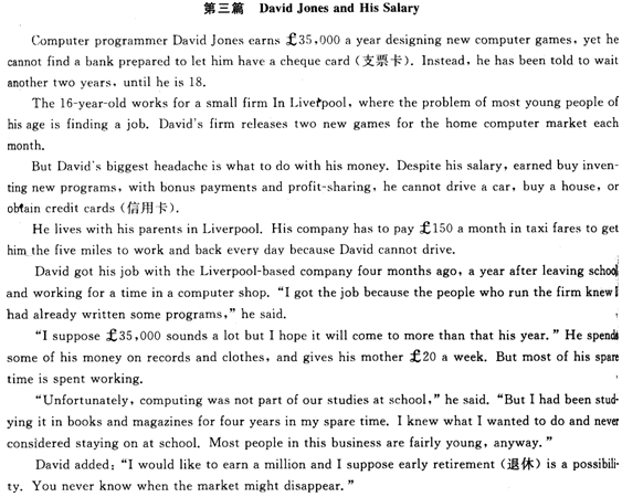 下面有3篇短文,每篇短文后有5道题。请根据短文内容,为每题确定1个最佳选项。