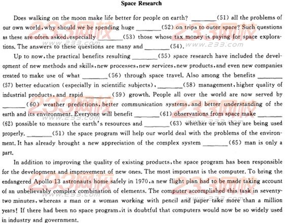 第6部分:完形填空(第51~65题,每题1分,共15分)