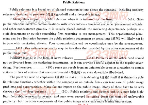 进入全真模拟考场在线测试此套试卷,可查看答案及解析并自动评分 >> 在线做题 第5部分:补全短文(第46~50题,每题2分,共10分)